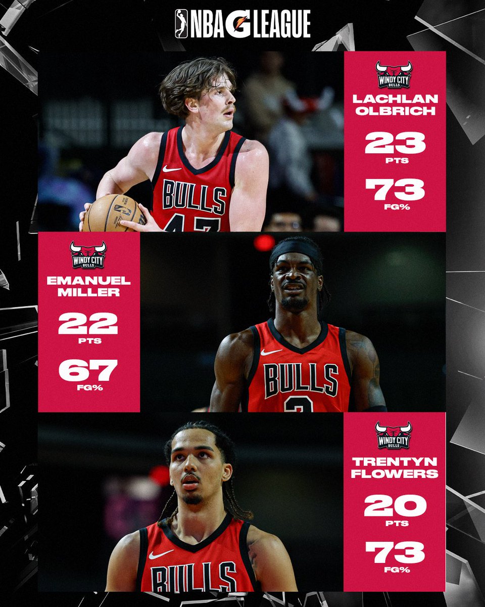 All three @chicagobulls Two-Way signees WENT OFF in the @windycitybulls victory over the Boom!