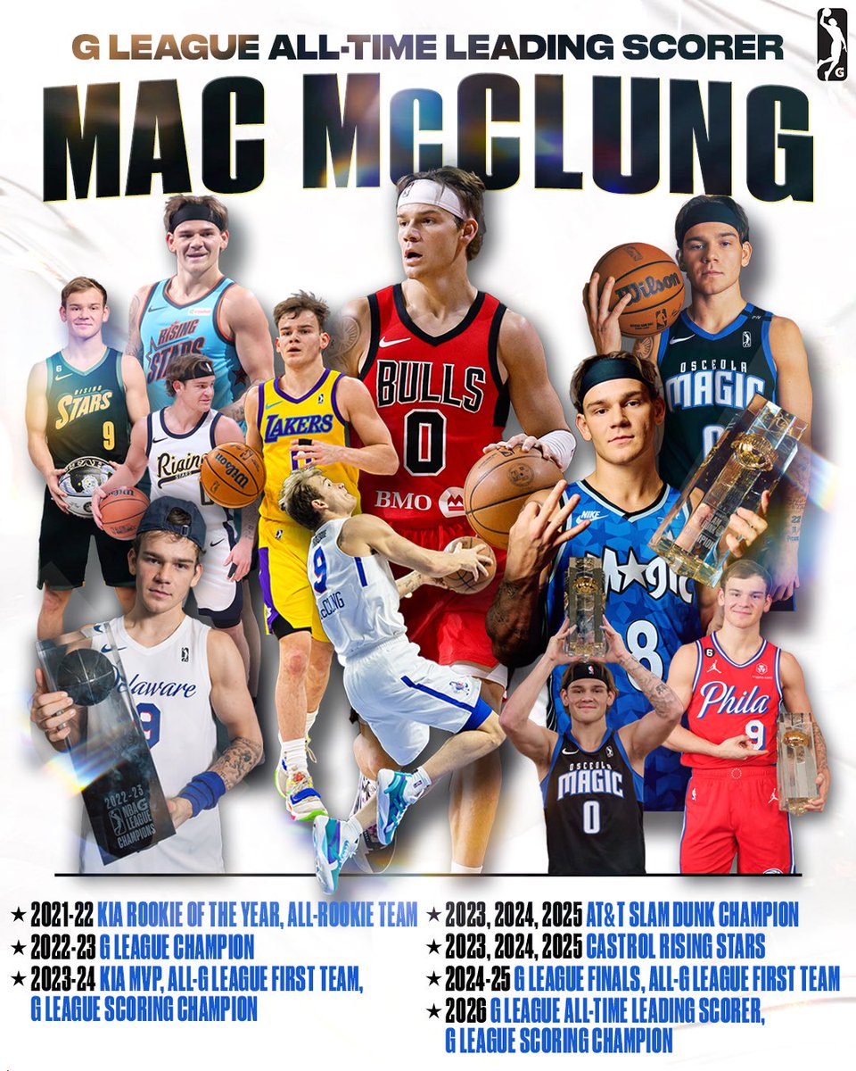 A resume unlike anything we've seen before! During his five years in the G League, Mac McClung made history time and time again. 🏆💍