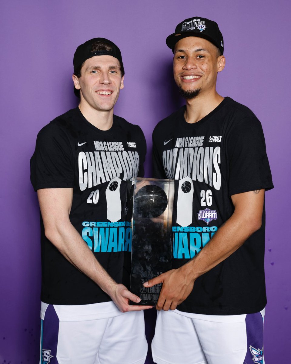 TWO RINGS! Liam McNeeley, Jaylen Sims, Tidjane SalaΓΌn and DJ Rodman won the 2025 NBA Summer League with the @hornets and now celebrate being the 2025-26 NBA G League Champions! ππ