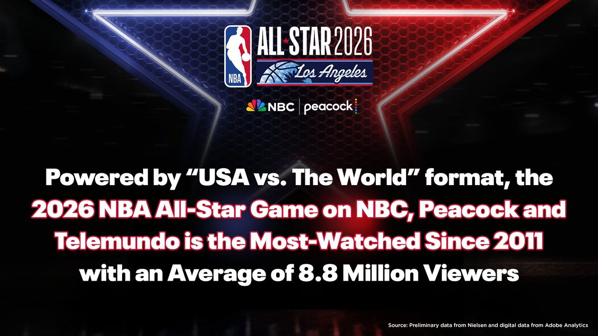 The first NBA All-Star Game presented by NBC Sports since 2002 delivered the largest NBA All-Star Game audience since 2011, according to preliminary Nielsen data and digital data from Adobe Analytics.